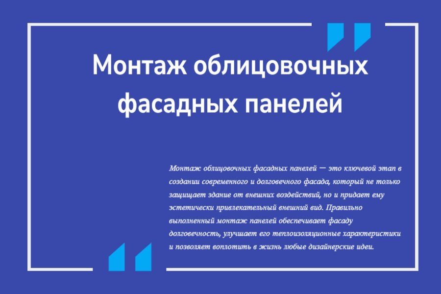 Монтаж облицовочных фасадных панелей — это ключевой этап в создании современного и долговечного фасада, который не только защищает здание от внешних воздействий, но и придает ему эстетически привлекательный внешний вид. Правильно выполненный монтаж панелей обеспечивает фасаду долговечность, улучшает его теплоизоляционные характеристики и позволяет воплотить в жизнь любые дизайнерские идеи.